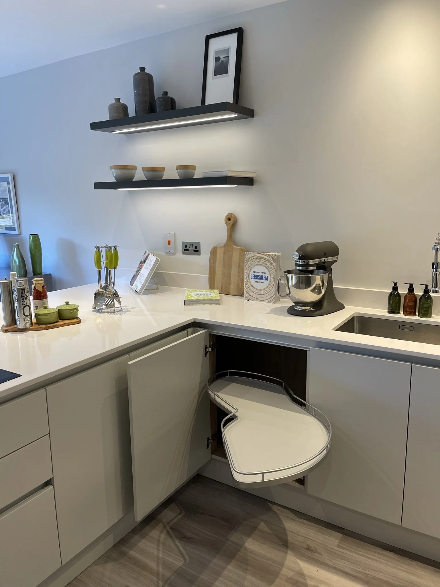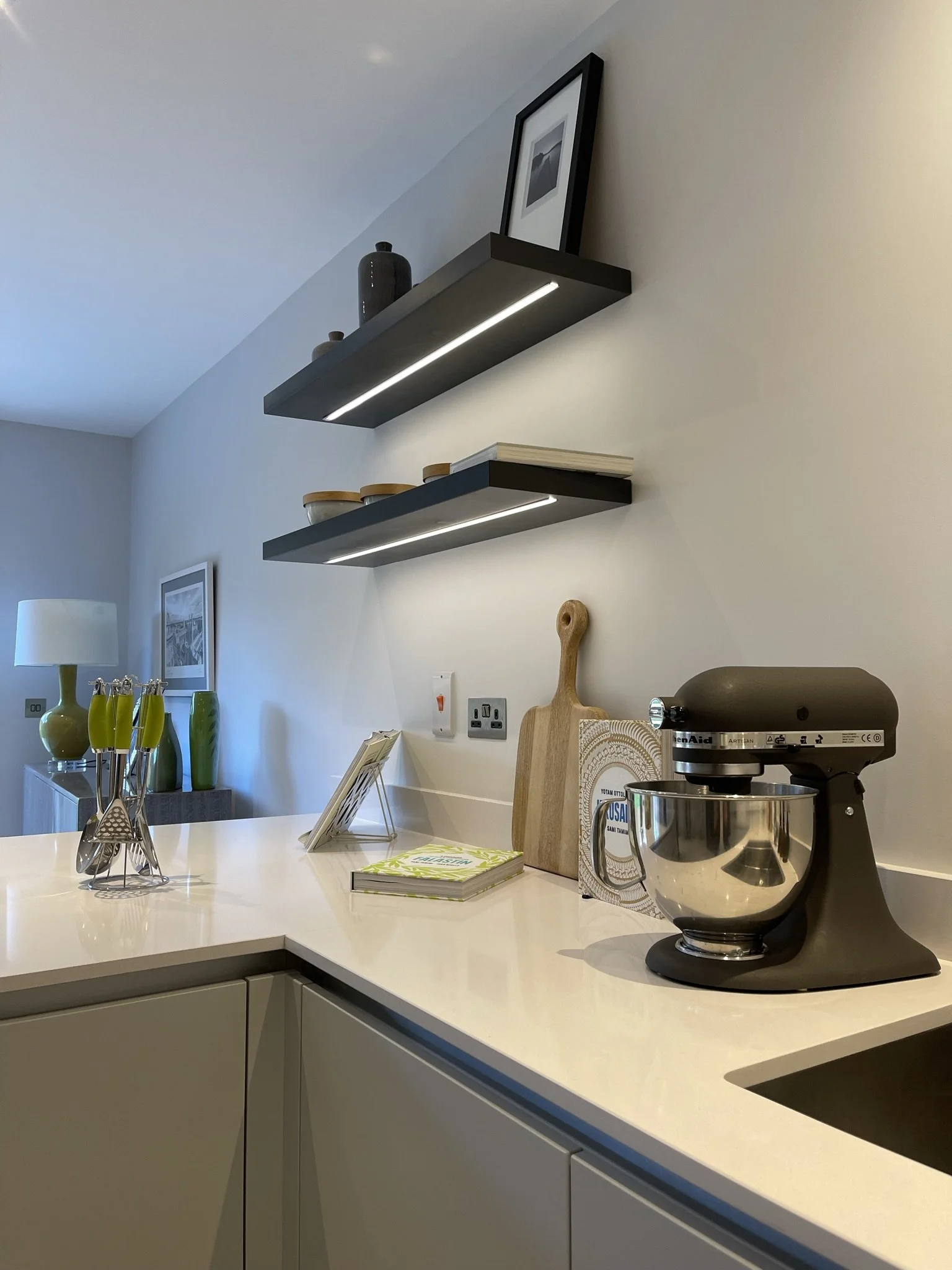 Custom made shelves with led lights, Internal Storage throughout the kitchen.