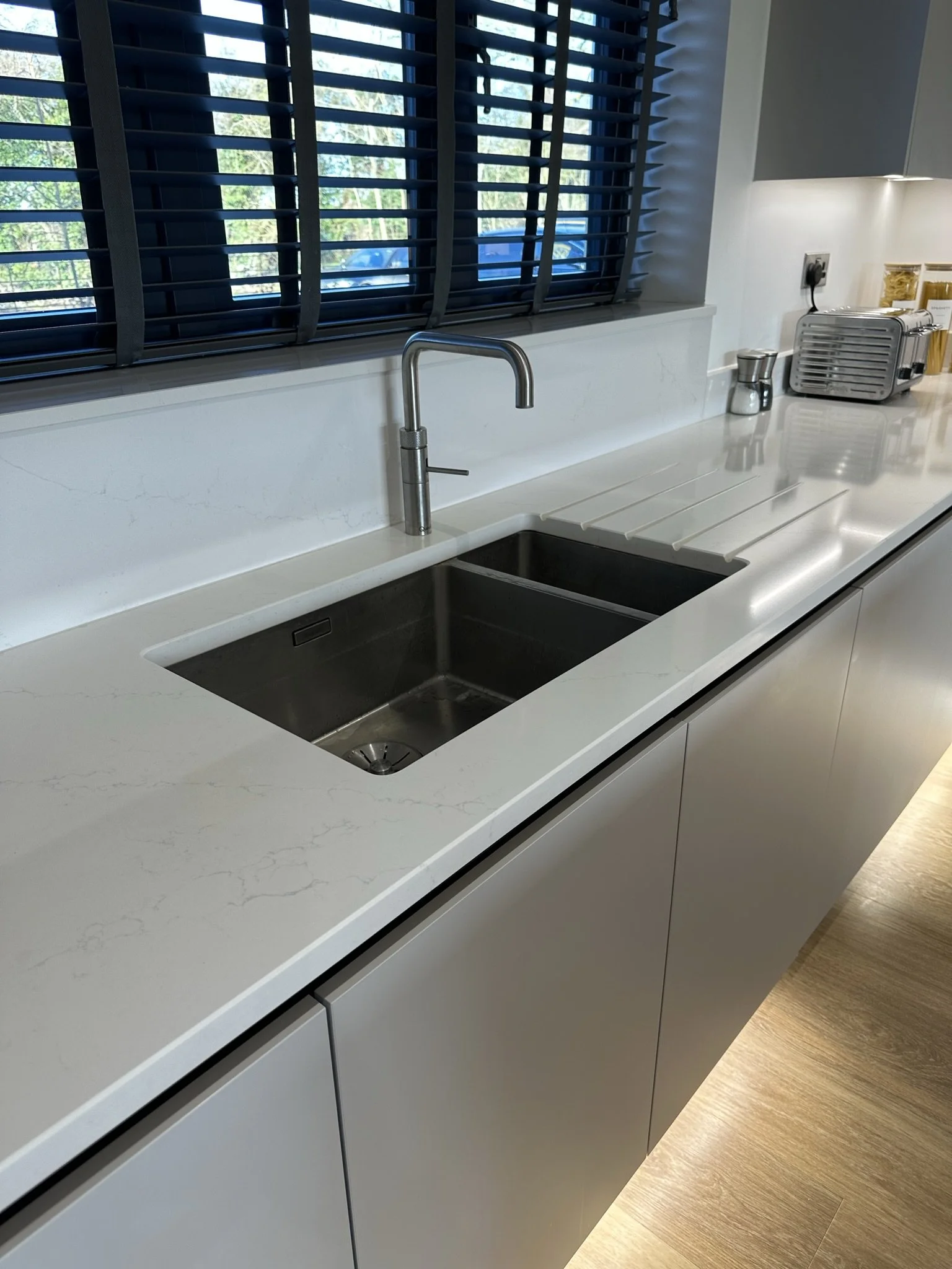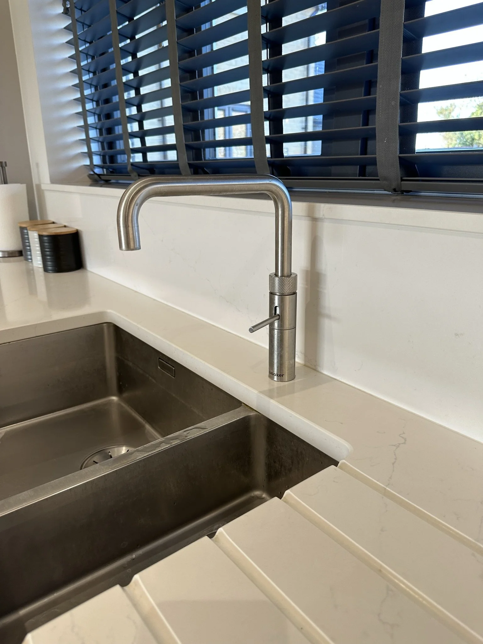 Large Andano 1.5 sink by Blanco, and a Blanco Fontas filtra tap in chrome.